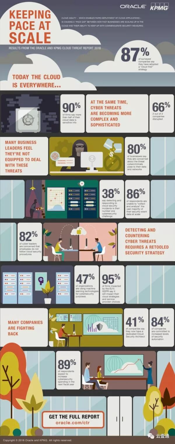 根据2018年Oracle和毕马威云计算威胁报告,87%的公司现在采用云优先战略,90%的公司表示他们在云中拥有的数据中有一半是敏感的。来自同一报告的数据显示,虽然这些公司已采取积极的方式采用云,但安全实践和政策似乎并没有赶上。
